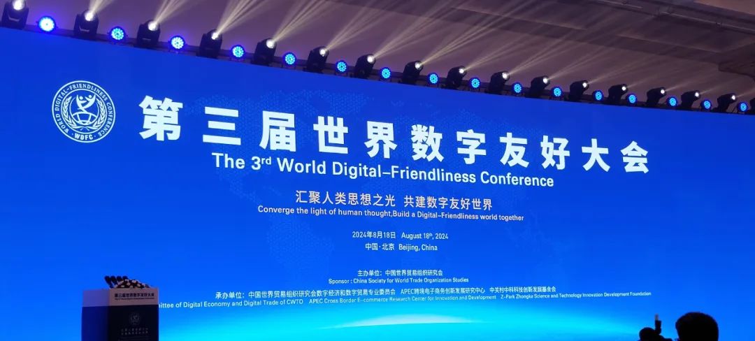近日,以“汇聚人类思想之光,共建数字友好世界”为主题的第三届世界数字友好大会暨第四届国际贸易数字化发展论坛、第一届再全球化与数字友好城市发展论坛在北京成功举办。大会由中国世界贸易组织研究会主办,中国世界贸易组织研究会数字经济和数字贸易专业委员会、APEC跨境电子商务创新发展研究中心、中关村中科科技创新发展基金会承办。