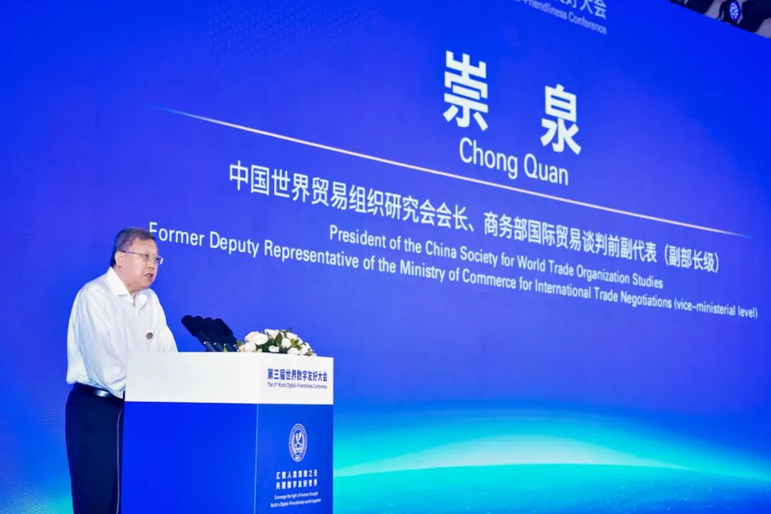 中国世界贸易组织研究会会长、商务部国际贸易谈判前副代表崇泉在致辞中指出,全球数字经济和数字贸易蓬勃发展,为响应党的二十届三中全会提出“推进高水平对外开放”“建设更高水平开放型经济新体制”重要部署背景下,释放高水平对外开放信号,展示中国与世界合作共赢。共同发展的坚定决心需要有全球性的解决方案,团结全世界利益相关方联合找到造福人类的全球解决方案
